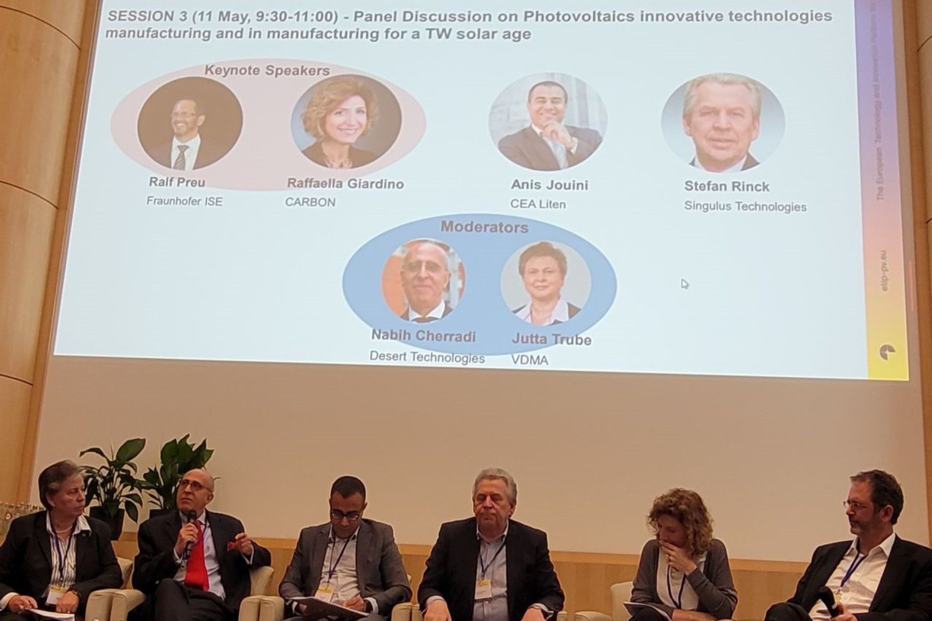 CARBON was invited to the annual ETIP-PV conference “PV Innovation: Assuring Europe’s Energy Independent Future with Photovoltaics”. Raffaella Giardino took the stage on May 11th to address members of the European Commission. The panel discussion was titled “Photovoltaics innovative technologies manufacturing and in manufacturing for a TW solar age“.